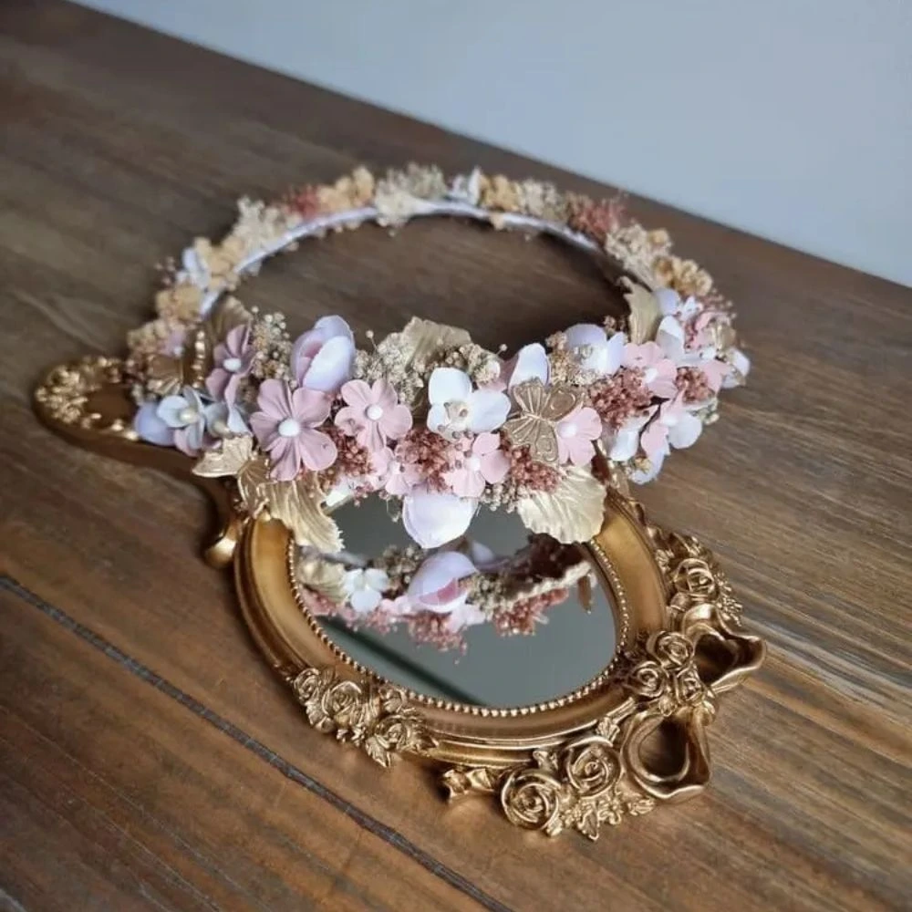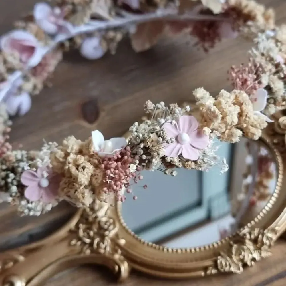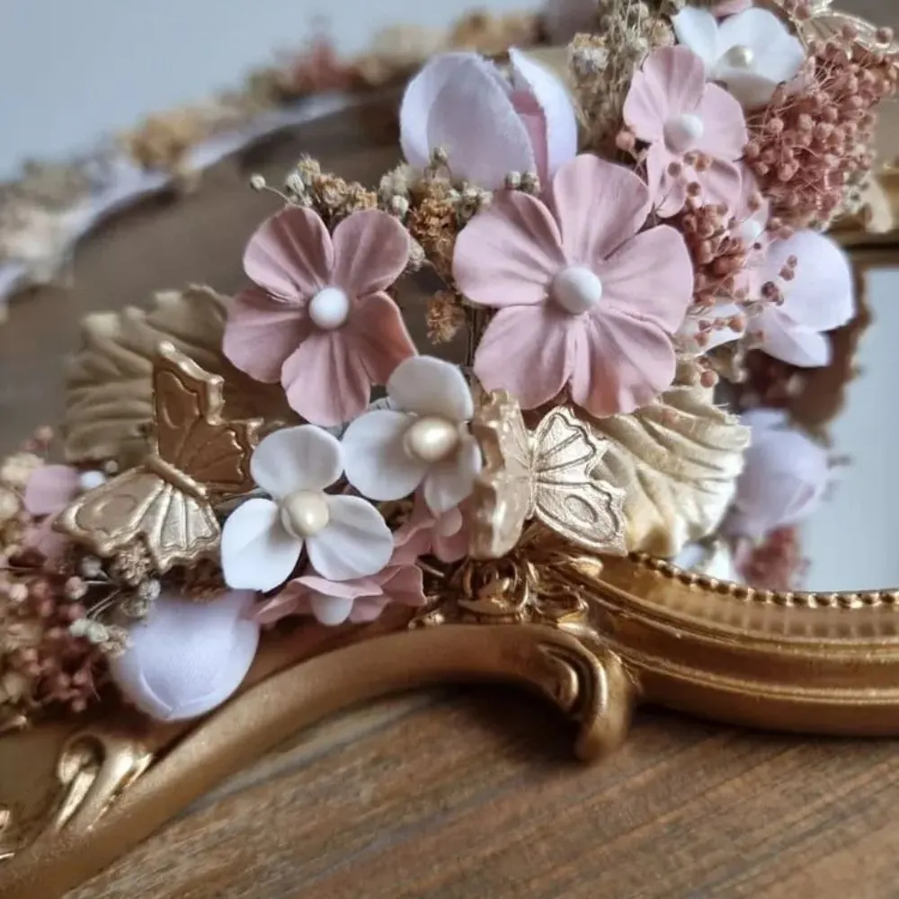 La Corona Cuento de Hadas es una pieza delicada y romántica, diseñada especialmente para comuniones. Su estilo floral en tonos suaves aporta un aire dulce y natural, ideal para acompañar un look infantil con elegancia y ligereza.